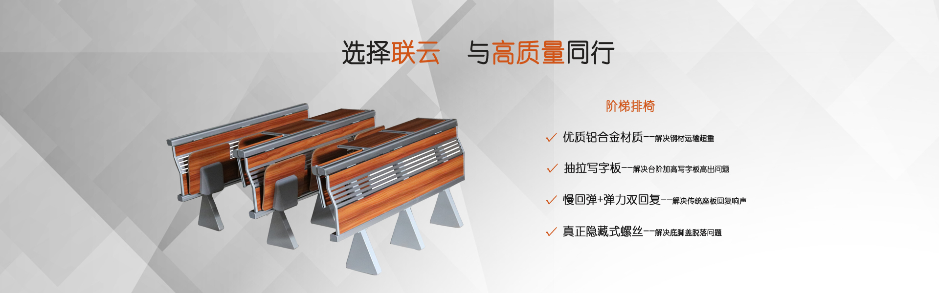 在網上可以直接看到觀眾席椅子的效果圖,廣東聯云也會給我們提供一定的設計圖紙,可以作為參考,后續購買觀眾席椅子也比較有保障。禮堂座椅效果圖可以讓我們看到不同類型的座椅樣式、安裝樣式等。觀眾席座椅的效果圖只能給我們一定的參考,但最后要考慮是否有一些折疊座椅或移動座椅,以保證良好的應用效果。